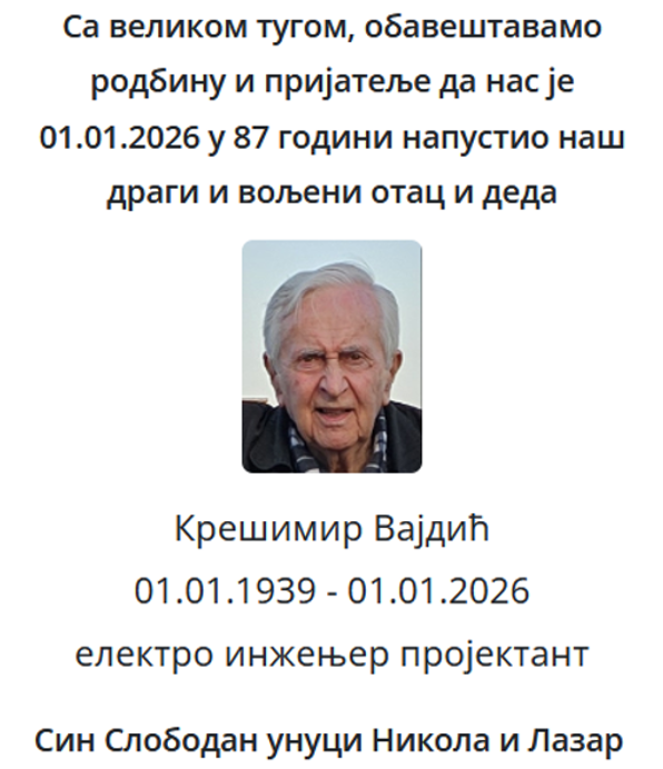 Ретки се рађају првог јануара, а још ређи напуштају овај свет баш на свој рођендан. Такав одлазак и доликује Крешимиру, јер је он заиста био редак пример поштеног и доброг човека.